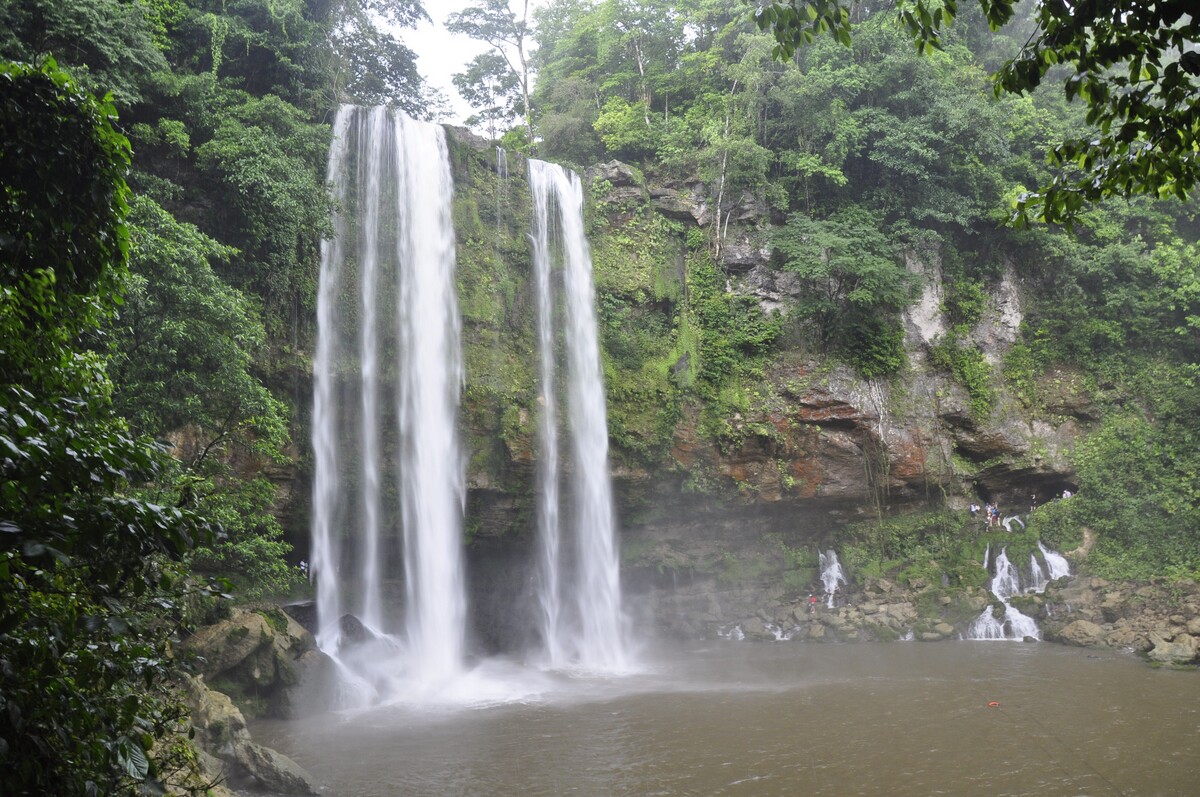 Rodeada de abundante vegetación se observa una caída de 30m de altura, ideal para refrescarse luego de nuestro recorrido en Palenque.