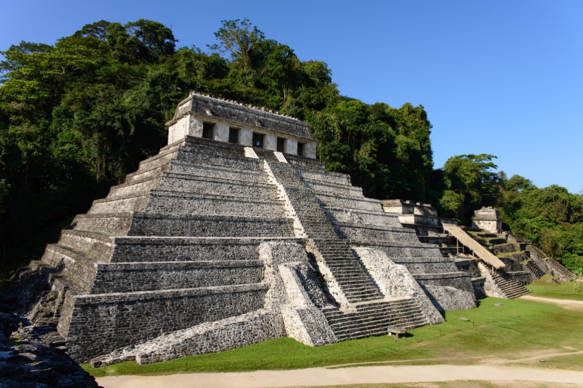 Construcciones magistrales nos reciben, como el palacio,con una torre que sobresale sobre el resto de los edificios. A un lado se encuentra el juego de pelota. El templo de las inscripciones es de los mas importantes ya que ahí se encontró la tumba del rey Pakal que alguna vez gobernó la ciudad.